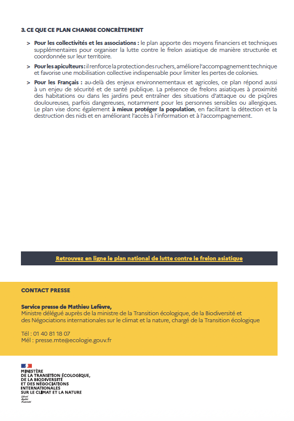 Communiqué de presse du Ministre MATHIEU LEFÈVRE MINISTRE DÉLÉGUÉ CHARGÉ DE LA TRANSITION ÉCOLOGIQUE se referant à la loi "Frelon"